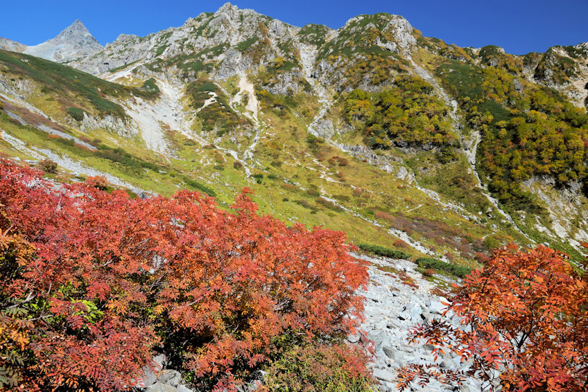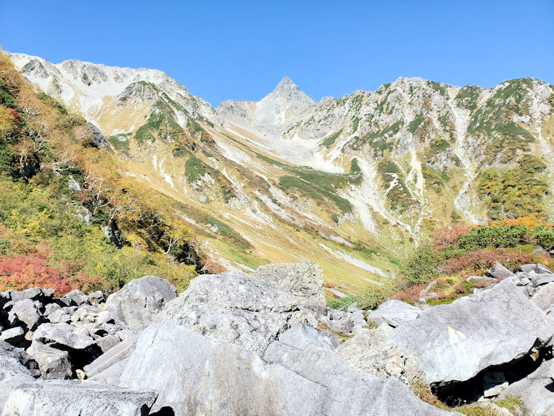 2日目は槍沢へ行って紅葉を見たいと思っています。かつて私は何度か涸沢で紅葉を見たことはあるのですが、槍沢の紅葉は見たことがありません。まさに今回のメインテーマがこの槍沢の紅葉です。