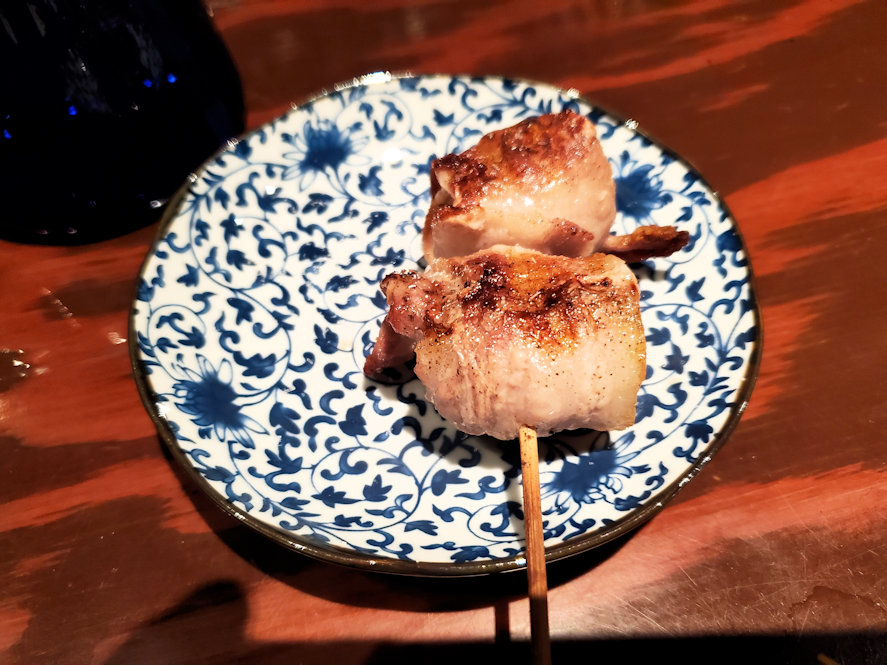 どれも美味しかったのですが、特にお奨めはいわい地鶏の炭火焼き、刺身盛り合わせ、そして焼鳥類です。最後の焼鳥は、アスパラ巻とうずら卵巻を注文したのですが、鶏肉の歯ざわりと塩味、そして具材の組み合わせが絶品でした。