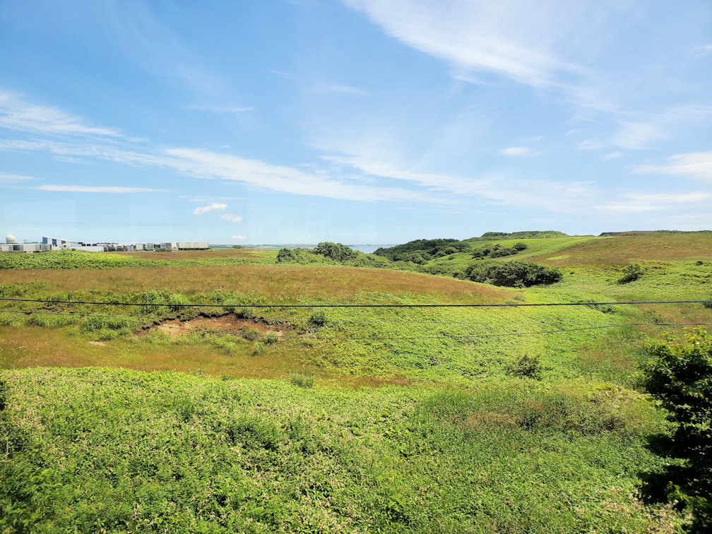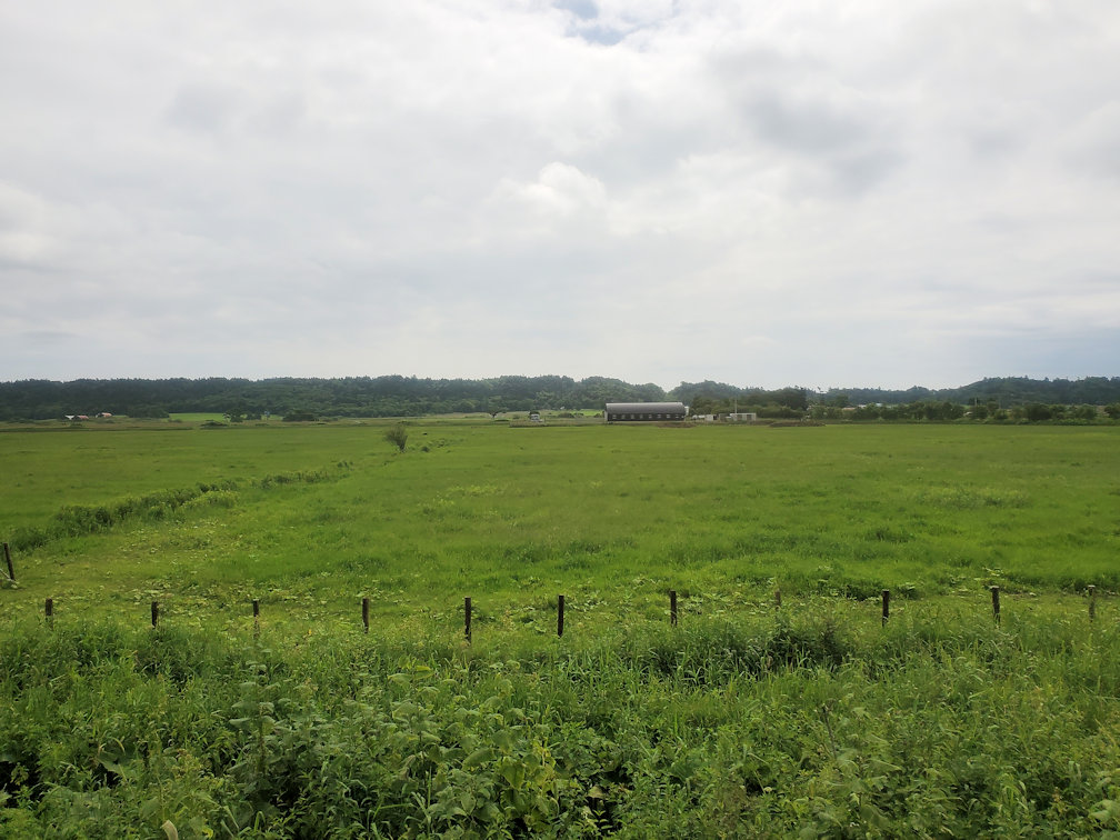 発車してしばらくすると、市街地を抜けて北海道らしい原生林の中に入っていきます。現生林を抜けると牧草地帯。これまた北海道らしい風景です。
