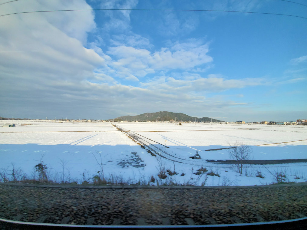 気を取り直して0745仙台発の福島行に乗る。仙台~福島間。普段なら特に見るべき景観もない所だが、今回はこのあたりもかなり雪が降っており、雪景色がとても綺麗であった。