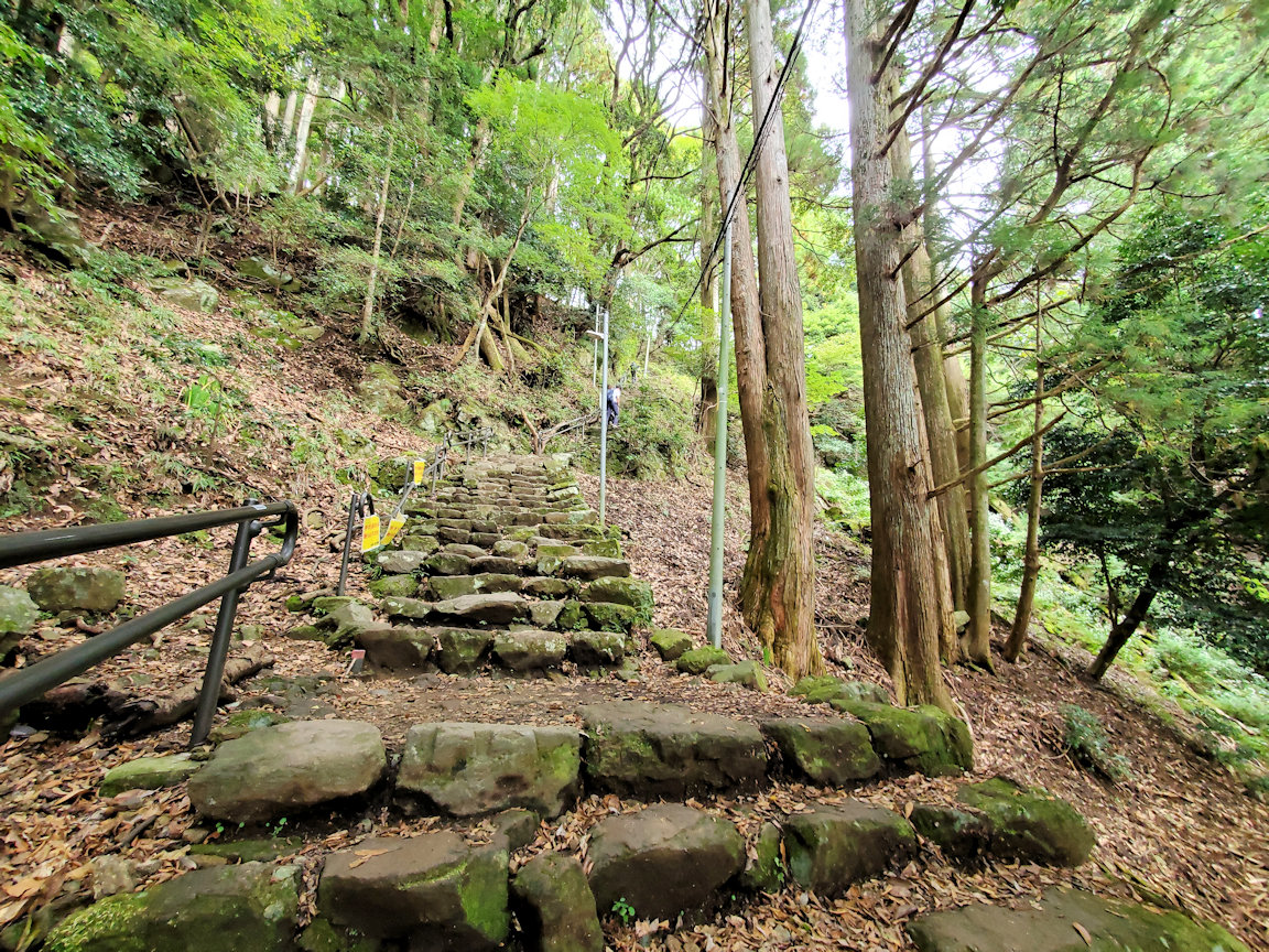 大山寺からは斜度がきつくなり、登るのが結構大変になってきます。苔がついて滑りやすくなっている石段を、滑らないようのに慎重に登っていきます。