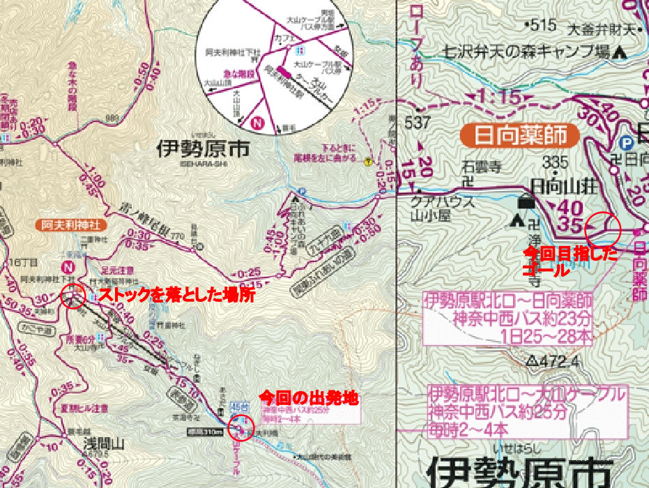 今回は公共交通機関を使って伊勢原からバスで移動。伊勢原発の大山ケーブル行バスはかなり混んでいましたが、途中から座れました。大山ケーブルバス停には0815頃に到着。ここから歩き始めます。